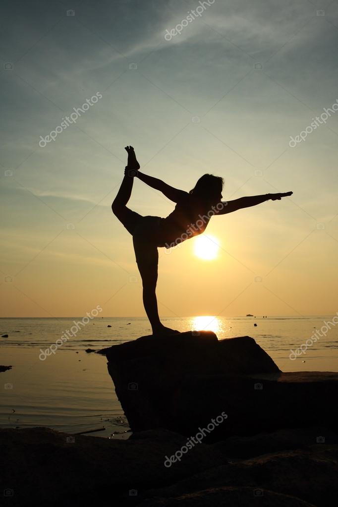 Backlight shooting sunrise beach practicing yoga woman ... from freedesignfile.com